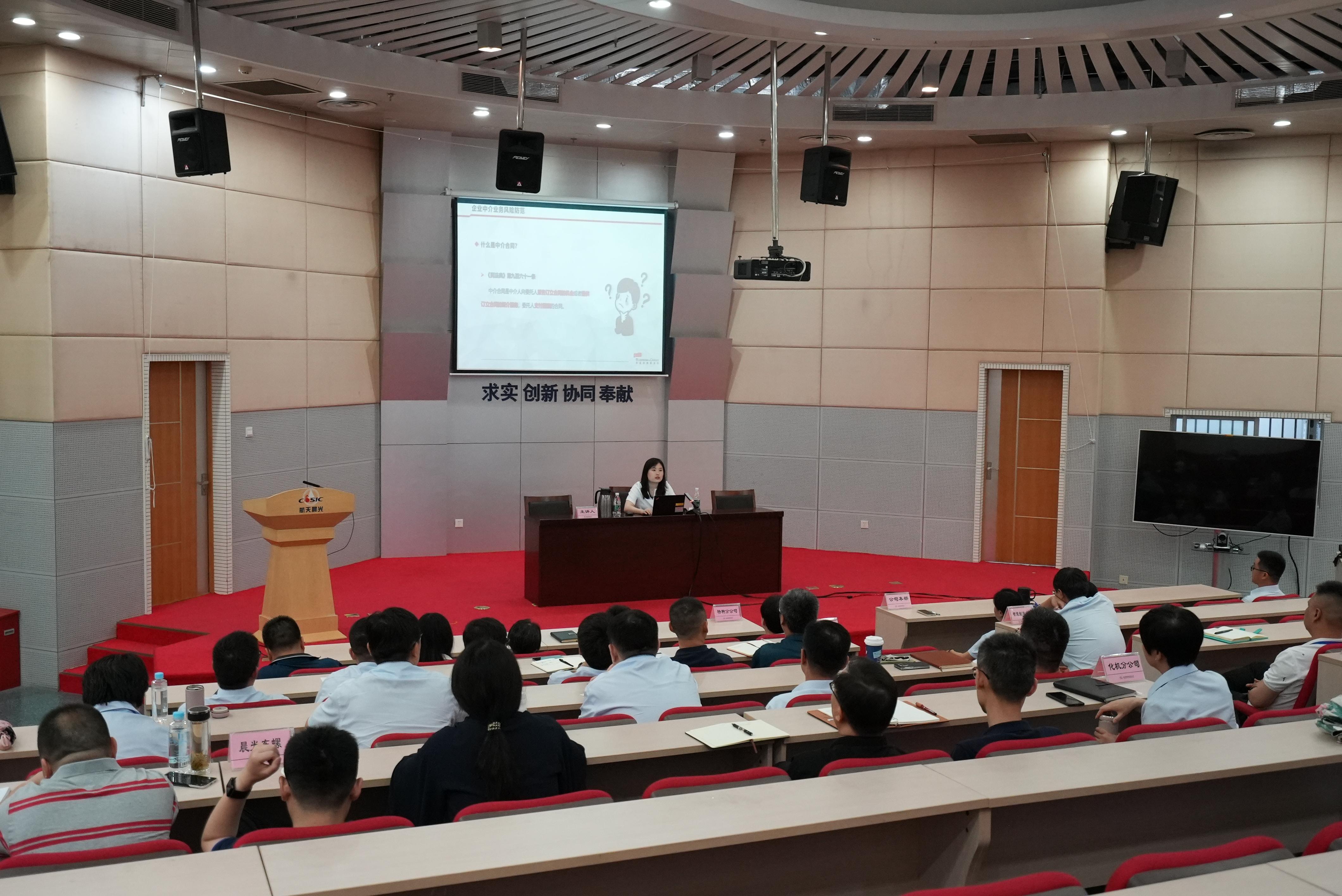 6月28日,公司組織開展中介服務合同專題培訓。公司本部相關部門人員,各單位營銷主管領導、總會計師、總法律顧問,各單位科研生產室、商務中心、法律、風險、合規管理人員及其他有關人員共計91人參加培訓。