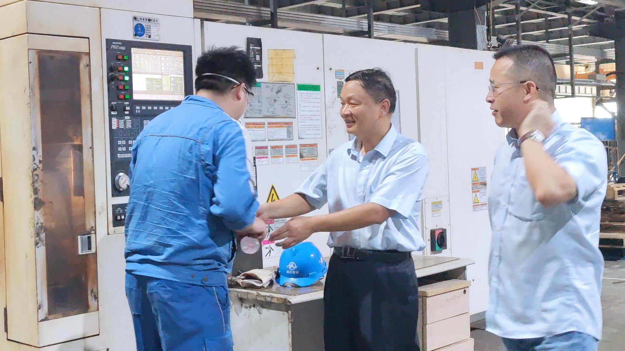 文樹梁一行深入晨光森田生產車間,實地查看了晨光森田各生產班組,詳細了解了科研生產、在手任務、產品質量管控、新產品自主研制和安全生產等情況,并代表公司黨委對高溫下辛勤工作的一線人員進行慰問。