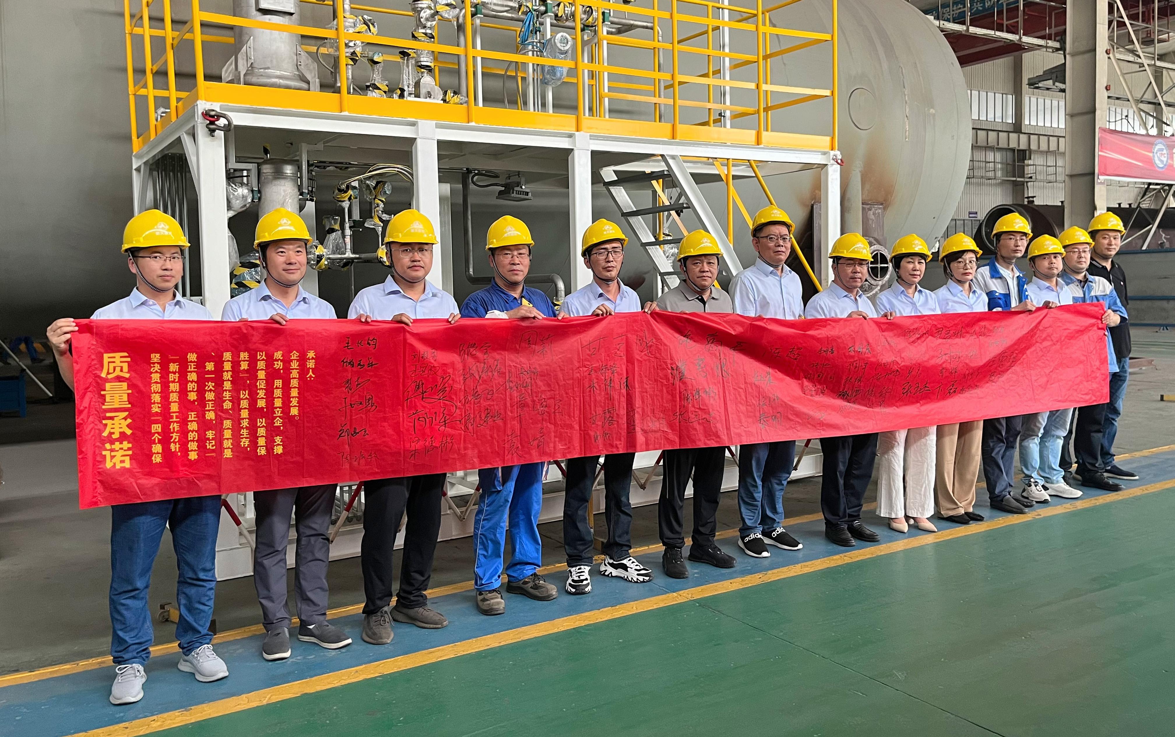 千人來簽名,質(zhì)量我承諾,公司組織開展千人質(zhì)量承諾活動,倡議全體職工“人人關(guān)心質(zhì)量、人人重視質(zhì)量、人人追求質(zhì)量”,并向相關(guān)方和公司做出鄭重承諾。質(zhì)檢中心編印發(fā)放《質(zhì)檢中心工作指導(dǎo)手冊》,各派駐檢驗(yàn)組紛紛在宣傳橫幅上留名,做出“牢記職責(zé)使命、堅守職業(yè)操守、敬畏產(chǎn)品質(zhì)量”的莊嚴(yán)承諾。防務(wù)中心、化機(jī)分公司、上海分公司、晨光東螺、晨光森田等單位主要領(lǐng)導(dǎo)帶頭,在質(zhì)量承諾條幅上鄭重簽字承諾,不忘承諾和初心,牢記自己的質(zhì)量責(zé)任。