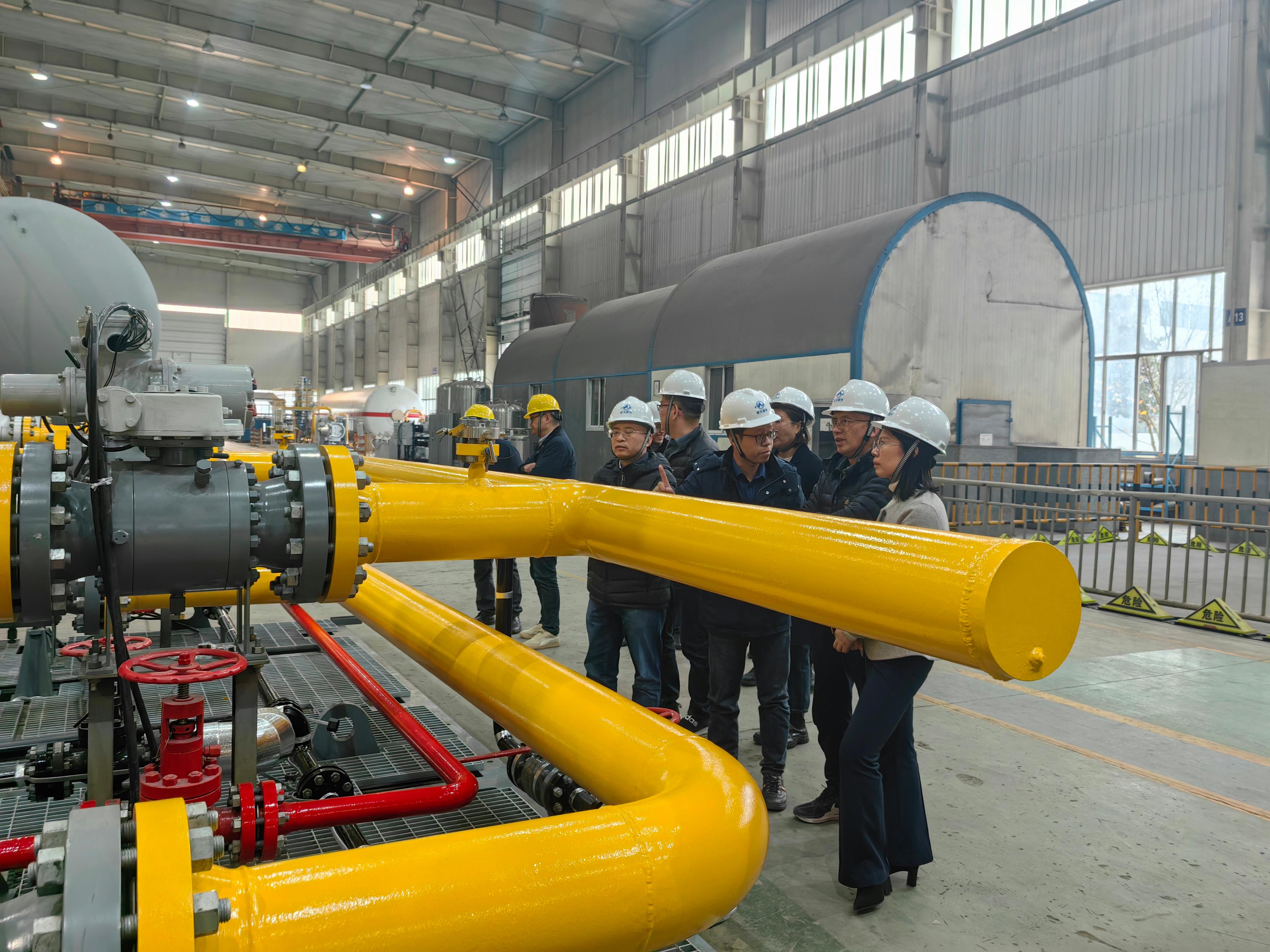 張曉艷對蔡總一行的到訪表示熱烈歡迎,對國家管網集團建設項目管理分公司多年來對公司的大力支持表示感謝,希望雙方加大合作力度和深度,在加強長輸管線領域合作的同時,引領重要設備國產化及重要技術創新,共同為國家能源行業發展貢獻力量?;瘷C分公司總經理毛長鈞介紹了分公司歷史及生產資源情況,希望雙方充分利用各自優勢,圍繞“新型環保過濾分離器”、“站場非標設備撬裝模塊化”、“LNG冷能綜合利用”、“氫能儲運”等方向開展合作。蔡朝輝對公司的生產制造能力表示高度認可,對公司在以往工程建設項目上做出的貢獻表示感謝,希望公司在后續項目中一如既往給予支持。