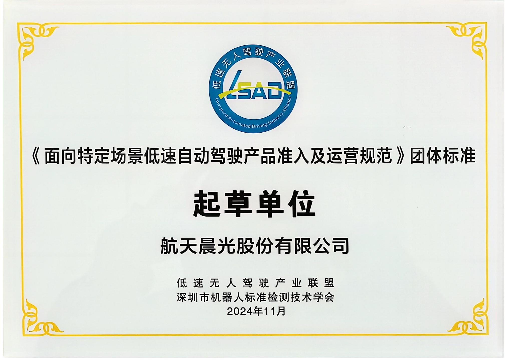 近日,在威海盛大召開(kāi)的2024(第四屆)低速無(wú)人駕駛行業(yè)發(fā)展年會(huì)暨中韓(威海)低速無(wú)人車(chē)及移動(dòng)機(jī)器人應(yīng)用發(fā)展大會(huì)上,航天晨光作為深耕高端裝備制造領(lǐng)域、積極開(kāi)拓低速無(wú)人駕駛賽道的先鋒力量,憑借深厚技術(shù)積淀與卓越行業(yè)影響力,與眾多行業(yè)領(lǐng)頭企業(yè)精彩登臺(tái)發(fā)布《面向特定場(chǎng)景低速自動(dòng)駕駛產(chǎn)品準(zhǔn)入及運(yùn)營(yíng)要求》團(tuán)體標(biāo)準(zhǔn),為產(chǎn)業(yè)規(guī)范化、高質(zhì)量發(fā)展注入強(qiáng)勁動(dòng)力。