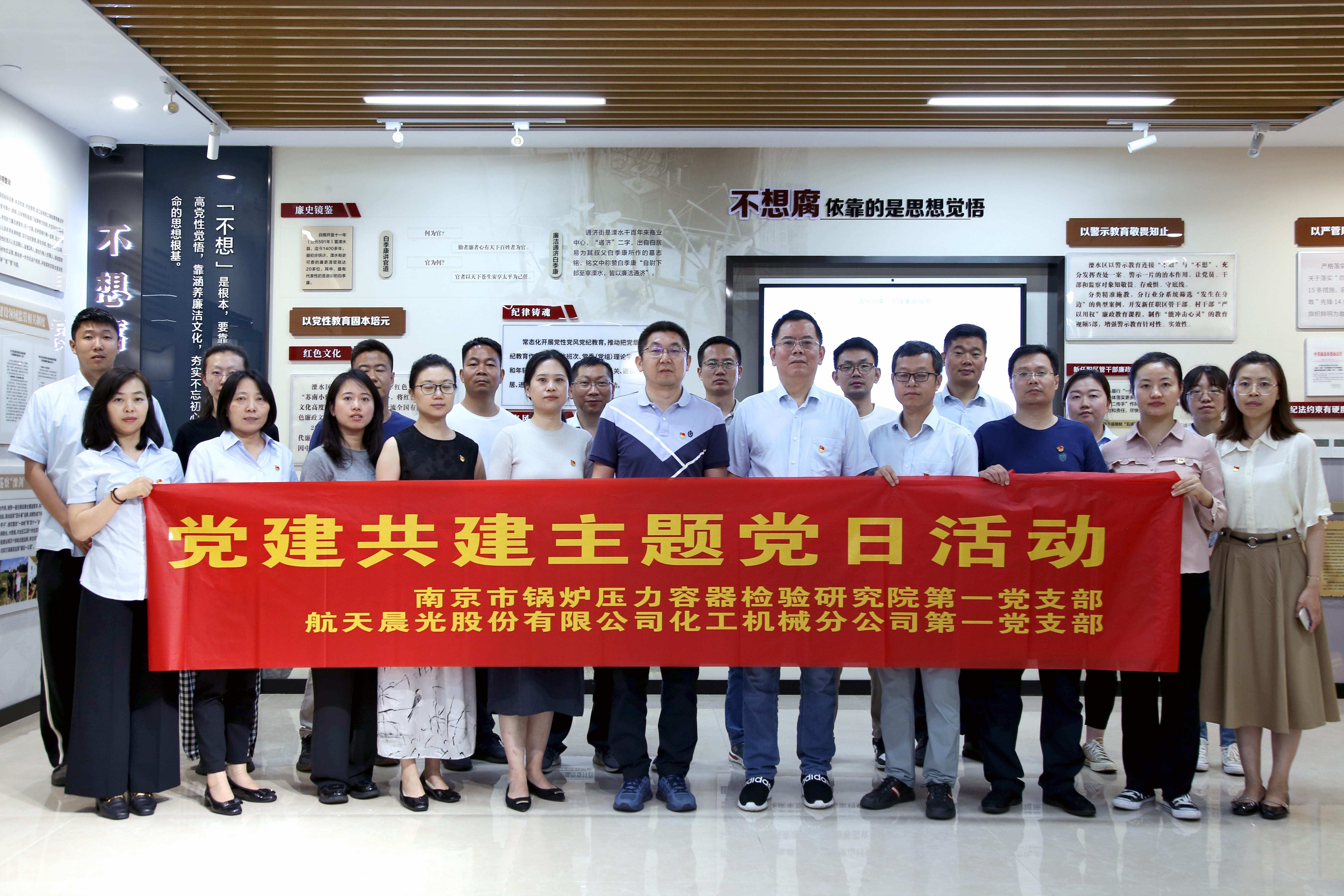 近日,航天晨光化機(jī)分公司第一黨支部聯(lián)合南京市鍋爐壓力容器檢驗(yàn)研究院第一黨支部開(kāi)展“明黨紀(jì)、倡廉潔、促發(fā)展”黨建共建活動(dòng)。分公司黨委書(shū)記、副總經(jīng)理儲(chǔ)志軍,黨委副書(shū)記、總經(jīng)理毛長(zhǎng)鈞,黨委委員、副總經(jīng)理張少勇,第一黨支部全體委員,黨委辦公室人員及部分黨員代表參加了本次活動(dòng)。