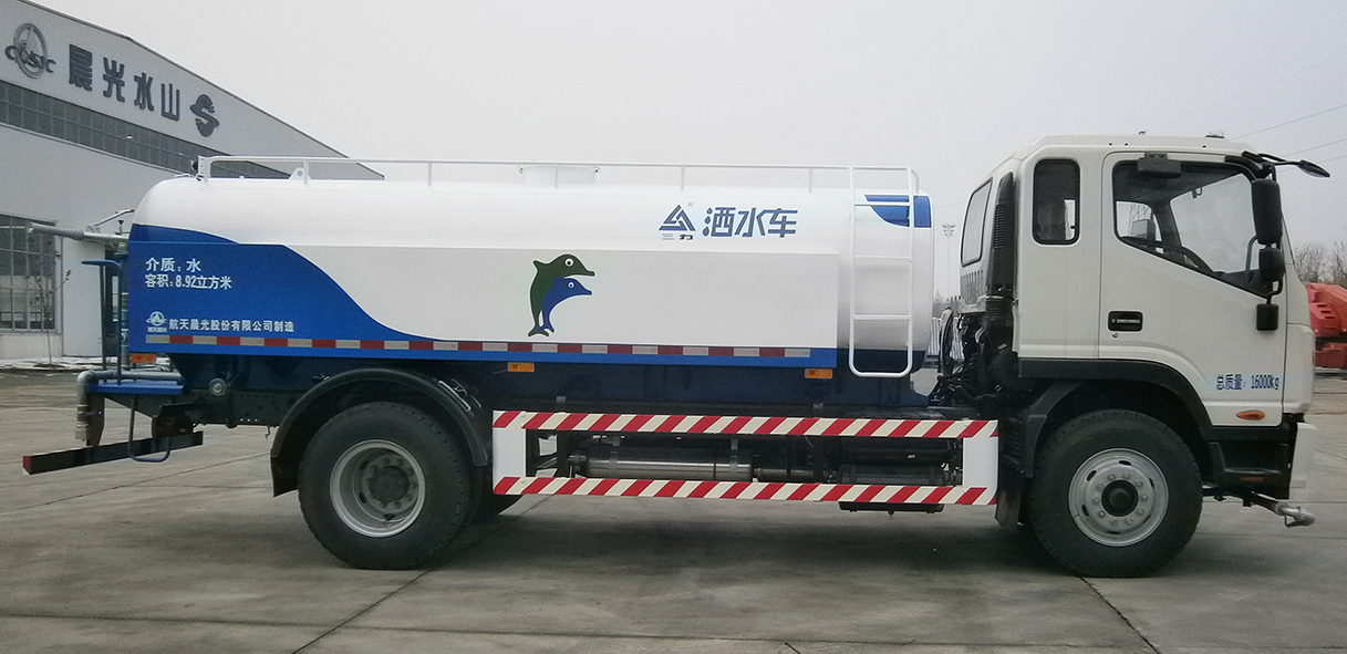CGJ5162GSSE4型灑水車具有五大功能:a. 對路面進行沖洗、灑水;b.運輸功能;c. 應急消防;d. 對樹木園林進行噴洗、澆灌養(yǎng)護;e. 作移動泵站。是專門用于城鎮(zhèn)道路、公路、橋梁、工程、工地等路面沖洗、灑水、降塵以及園林綠化噴洗和澆灌的專用車輛。